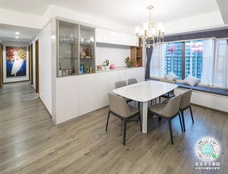 “那天回家的路上,我心血來潮買了幾支香水百合,想擺在餐桌上,和老公浪漫地撐臺腳,可回家看到那張堆了水壺、紙巾還有各種零食的餐桌,什麼心情都沒了……我當時就決定一定要裝個餐邊櫃。”