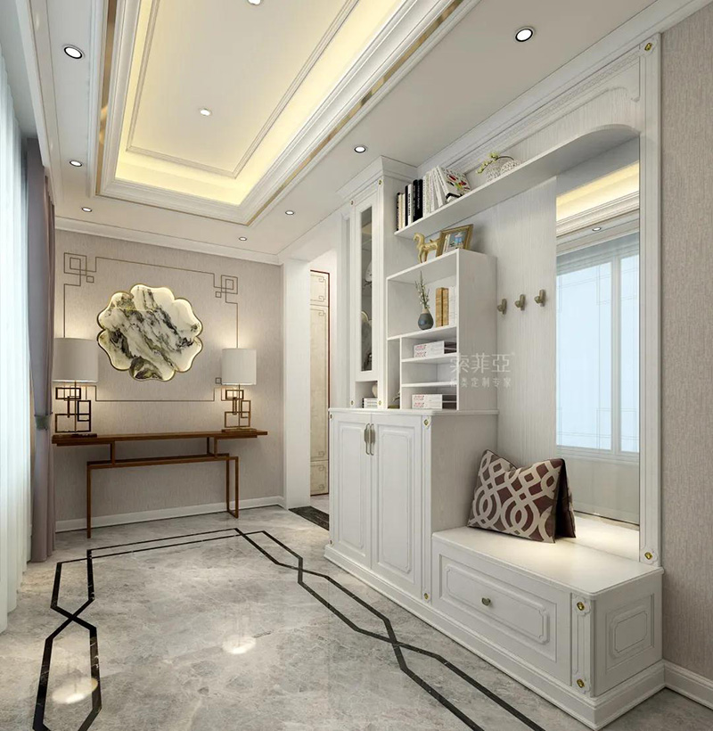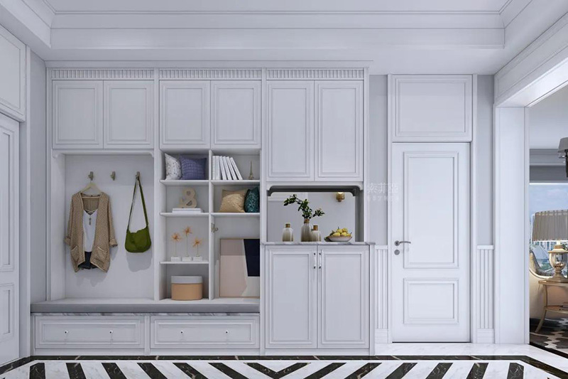 對于帶有獨特回型線條簡歐款鞋櫃,簡單的白色就能很好地突出它的精致美。