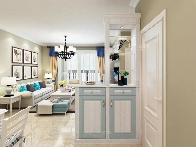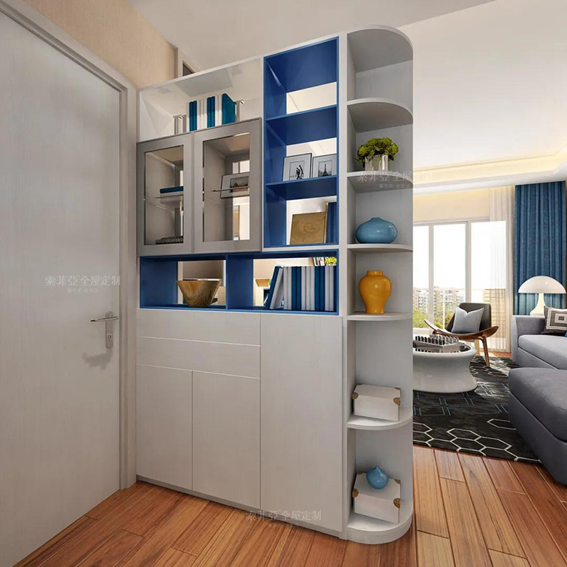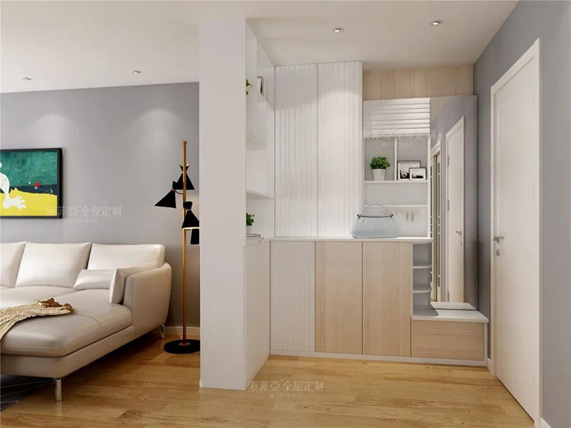 隔斷鞋櫃,最常見的保護客廳隱私的做法。可根據自家收納需求,選擇L型或一字型布局。