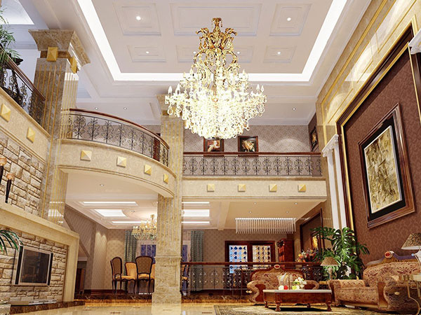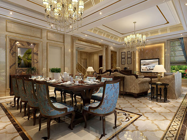 在歐式別墅中,業主多會購買一些名貴木材所制作的家具來布置居室,比如由胡桃木、櫻桃木、櫸木等木材制成的沙發、茶幾、餐桌等等,然后再以鑄銅、鍍金、鍍銀、鑲大理石等制作手法來美化家具,並且常常與華麗的水晶吊燈搭配。這樣可以凸顯歐式別墅的高貴與奢華之感。