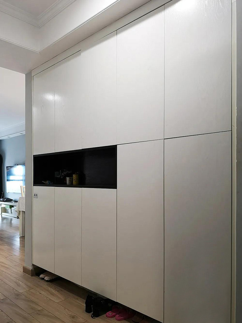 如果你家入戶過道有一面墻不是承重墻,可以考慮在墻上鑿一塊地方留給入戶櫃。
