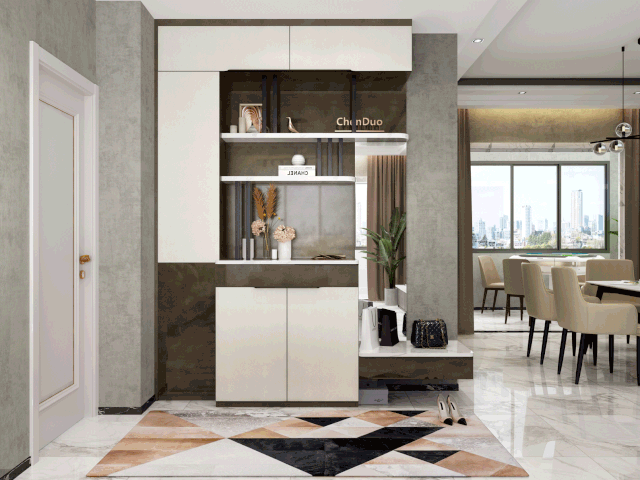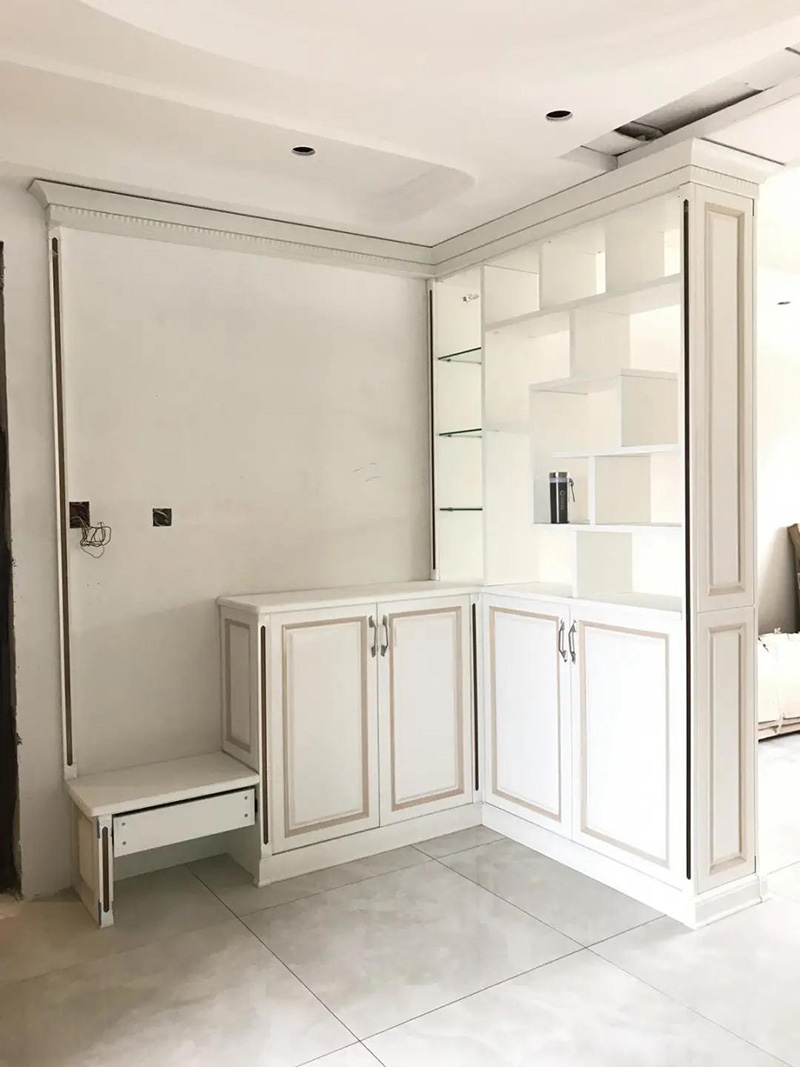 如果想要兩者兼顧,入戶櫃最好不做到頂,上方做鏤空隔板作為裝飾,對採光不好的入戶來說,可以避免大面積櫃子帶來的壓抑感。