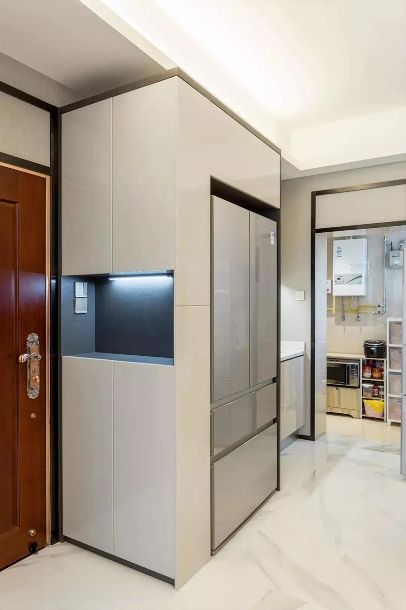 如果空間允許,還能垂直擺放打造一個“入戶箱”。用于“藏”家里的大冰箱,或放嬰兒車等常用又不易收納的物品。