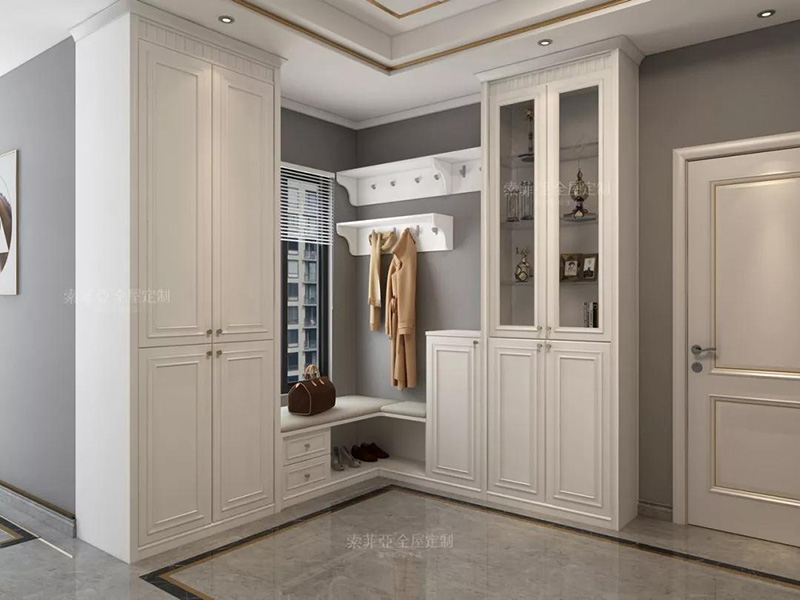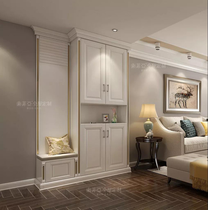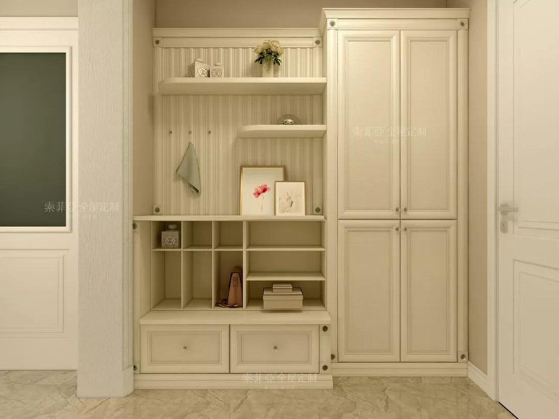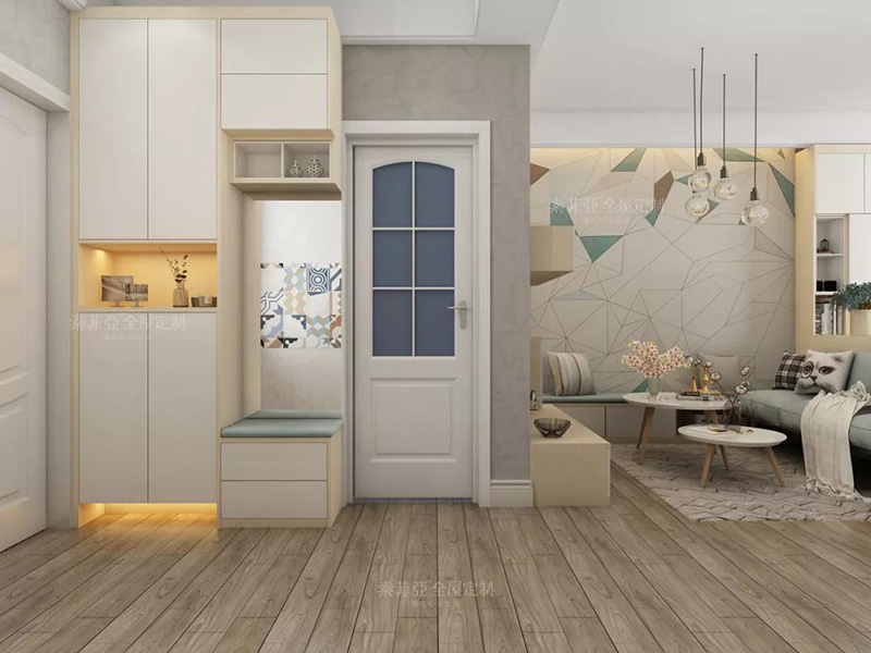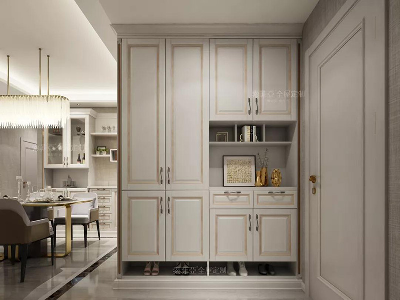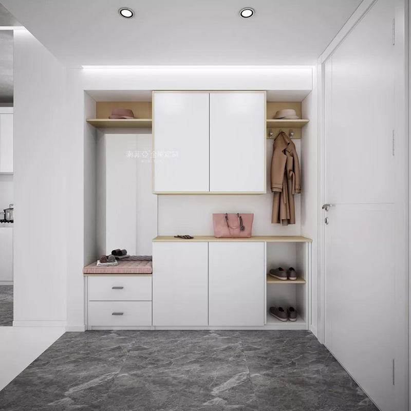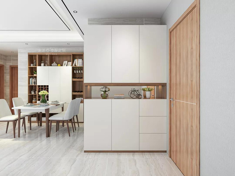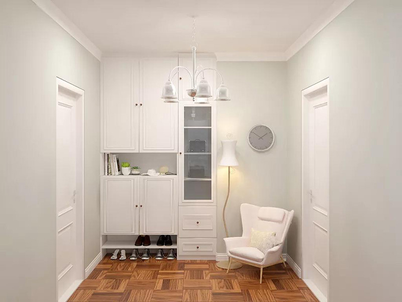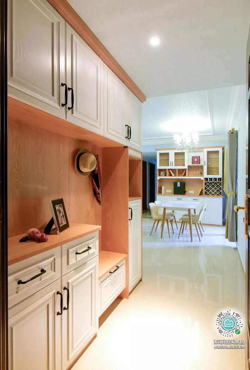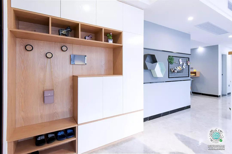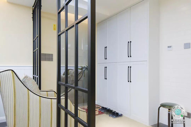 @安哥讓暖白色的入戶櫃隱形于白色乳膠漆墻面,開闊又明亮。