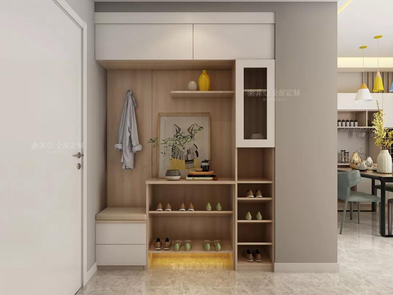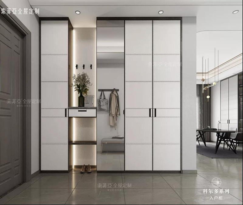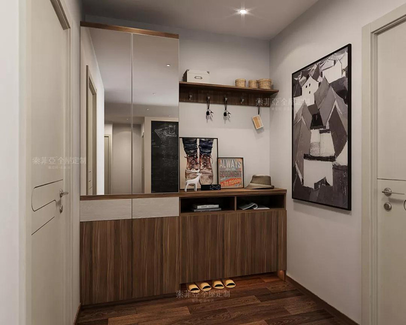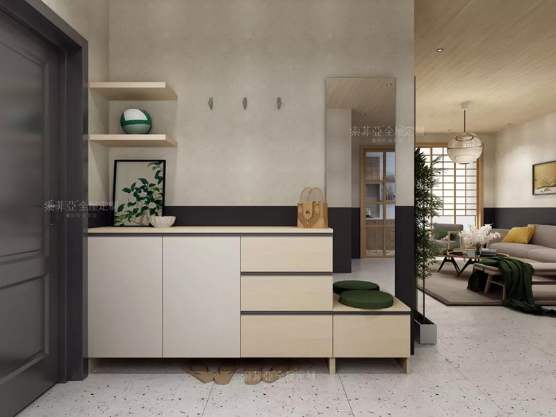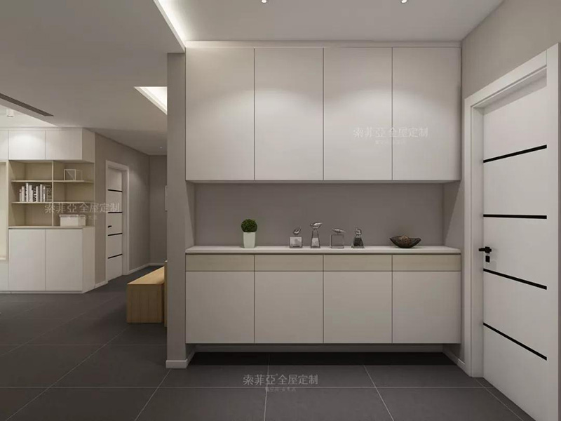 黑、灰兩種偏暗沉的色調不宜作為入戶櫃的主色調,用作小面積點綴即可。