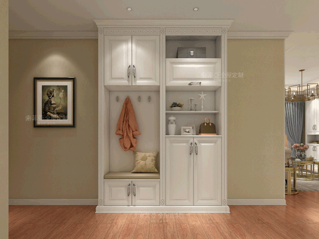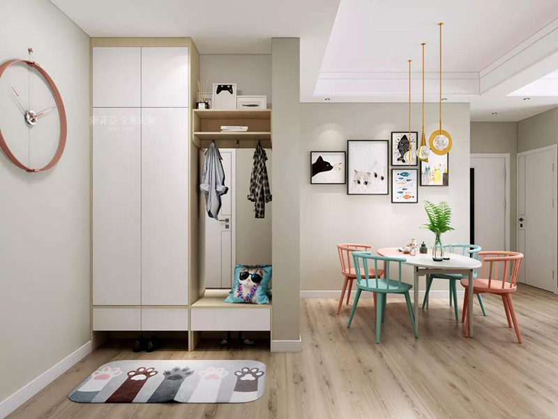 除了鞋櫃布局的變化,白色拼其他色系,會讓鞋櫃的設計感更強。