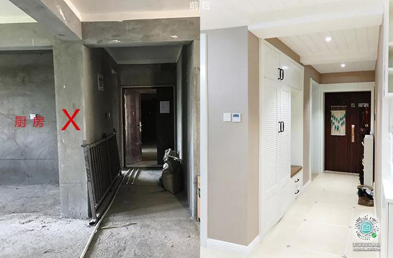 @amy把連著廚房那面墻(非承重墻)拆了,做成入墻式鞋櫃。