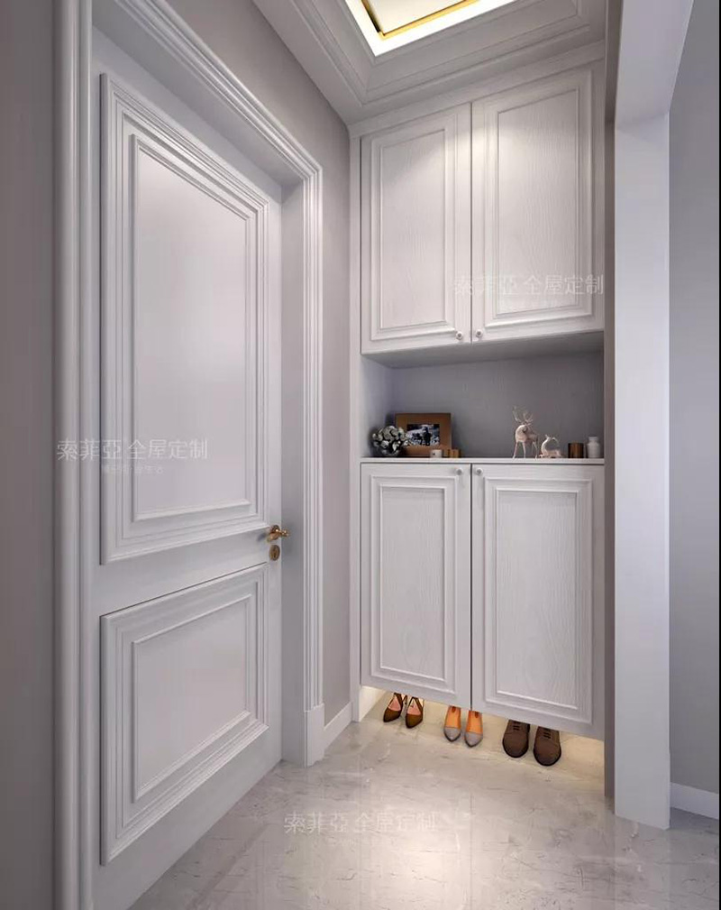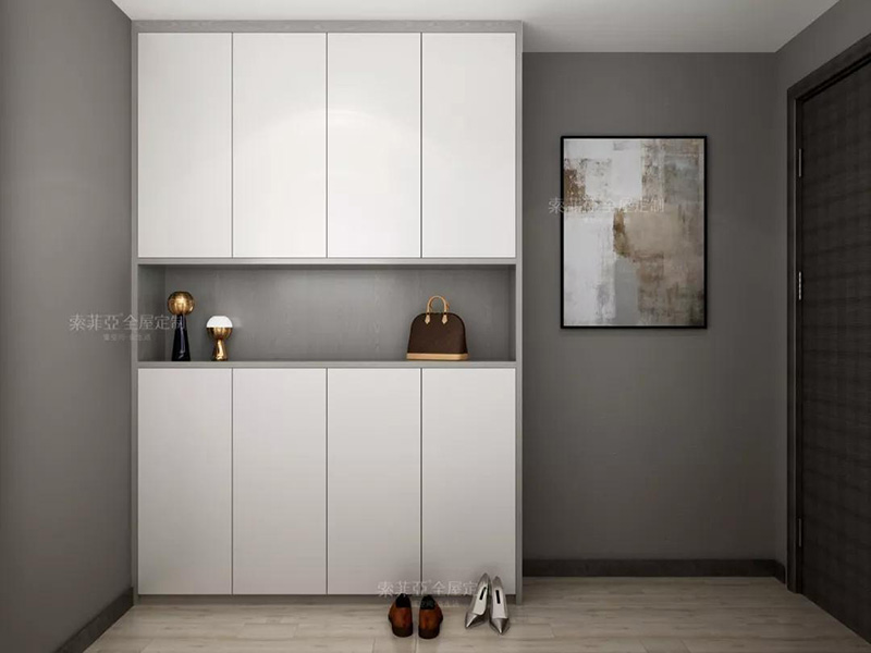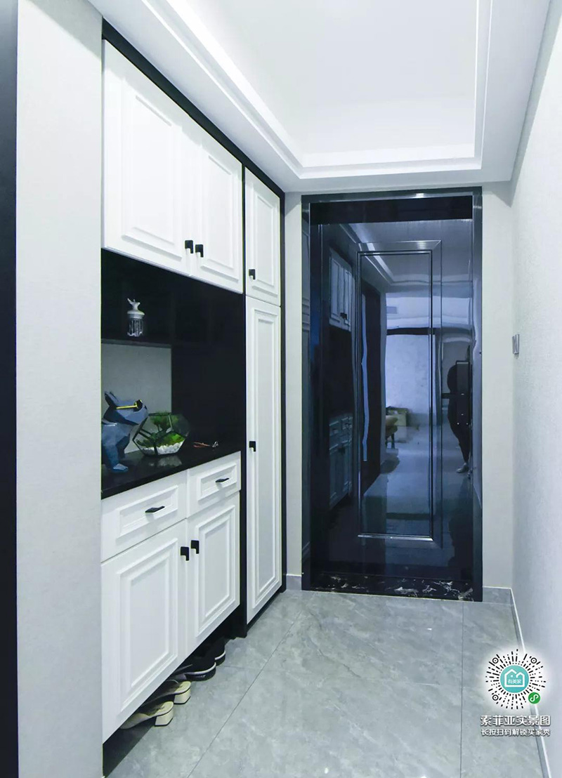 對無彩色情有獨鐘的朋友,以白色為主調,黑、灰做點綴,一個鞋櫃便可打造高級感滿分的入戶氛圍。