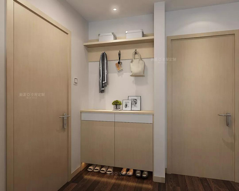 @andy家的毛坯房玄關處有一個凹位,裝潢動工前找設計師量尺,裝潢完之后,這個入墻式鞋櫃他們一家人都很喜歡。