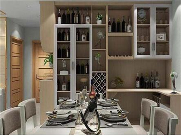 在餐廳酒櫃設計時,還要注意室內的風格和款式,這兩者是緊密相連的,不同的裝潢風格打造的酒櫃風格也是不一樣的,如歐式風格的酒櫃大多選用立櫃和組合式,體型較大,適用于餐廳面積大的環境使用。現代簡約風格的酒櫃款式既要新穎又要時尚,帶來更多的驚喜。還有復古風或者美式風的酒櫃大多采用壁掛式的設計,特別的有創意。