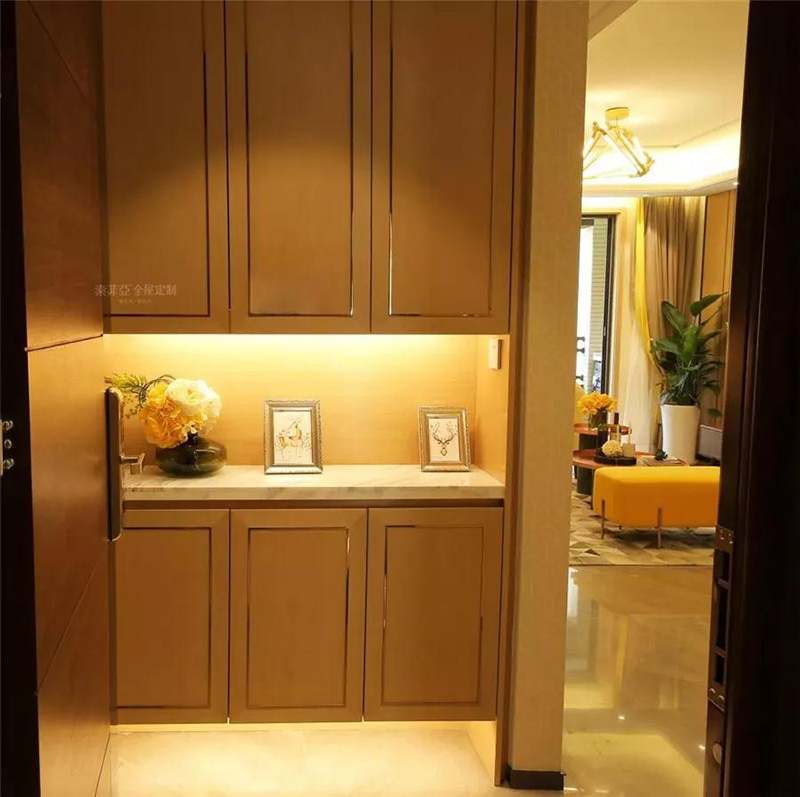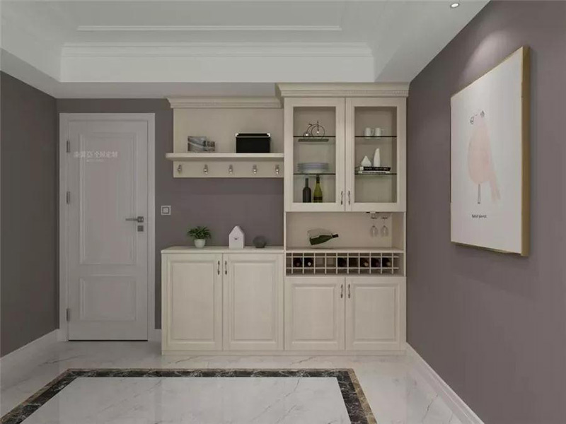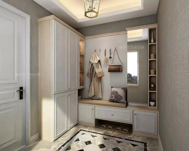 這種玄關是一個回字形空間,我們可最大程度利用墻體空間,做一個L型組合櫃,為家庭提供強大的收納支持。