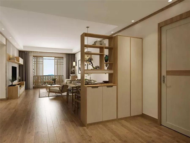 這種玄關是小戶型中最常見的,可以一眼看到陽臺,靠墻放(平行式)或做成隔斷墻(隔斷式)是目前比較實用的方案。