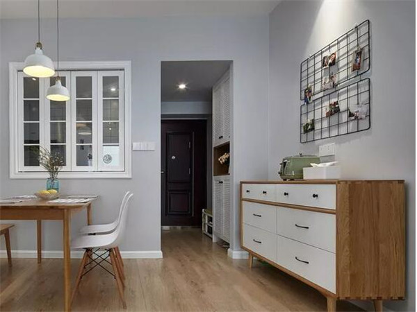 3、在餐邊櫃上擺放畫、攝影作品等,是比較常用的裝飾手法。櫃子的款式還是比較簡單樸素,方便搭配藝術品。藝術品的寬度一定要小于餐邊櫃的長度,否則視覺上會失去平衡感。