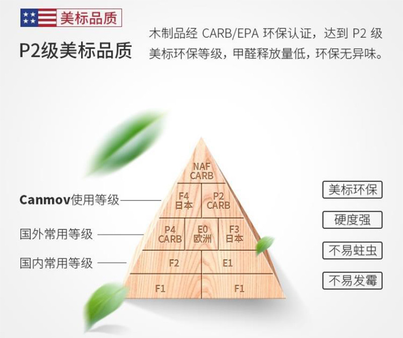 這次開發我們專門找了做出口的供應商打造,沙發木框架的環保等級達美國CARB認證P2級,這跟日本的F★★★★不相伯仲啊!