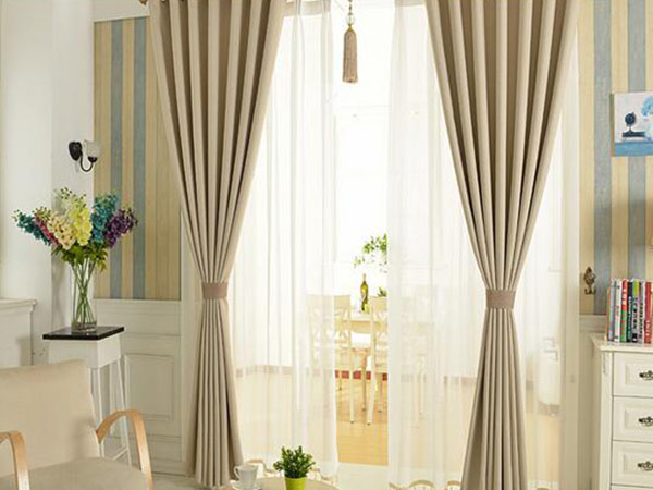 2、還有很多樣式的窗簾布藝為達到外表美觀更加典雅別致,所以通常會在主布上進行鑲嵌、上色、搭配其他質材。隨著現代家紡產品時尚品味的提高,窗簾布藝的設計也越來越關注色調的搭配和整體成品效果,接布成為窗簾布藝設計不可或缺的元素。飄逸的窗紗能提升窗簾布藝的美觀性與實用性,增強居室的柔美度,與搭配得當的主布料形成的層次感,與觀賞性也能展現主人的唯美追求。應用窗紗通常需要與主布料的花型搭配,以求形成和諧統一的風格,窗紗的主流材質包括:棉紗、麻紗、絲面紗、玻璃紗等,質感以輕柔、絲滑、通透網面等為主。