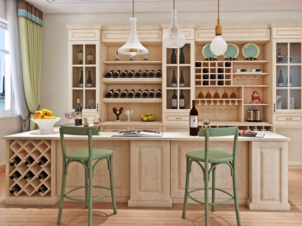 大部分酒櫃都使用的是歐式或者中式風格,因為酒櫃的存在並不是一種清新的裝飾,而且韻味的提升、品質的沉淀,所以在質地上也要有這種感覺,所以實木材質還是比較適合。