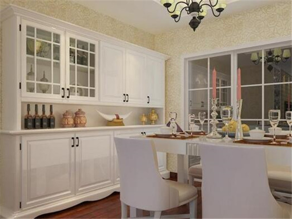 一些人會在餐廳加入餐邊櫃、吊櫃等來收納,如果家里是歐式裝潢風格會選用歐式餐邊櫃吊櫃,整體的家具配飾是歐式的,這樣風格才能和諧統一,用其他風格的會顯得非常突兀。下面是一組歐式餐邊櫃吊櫃設計款式圖片可以參考。