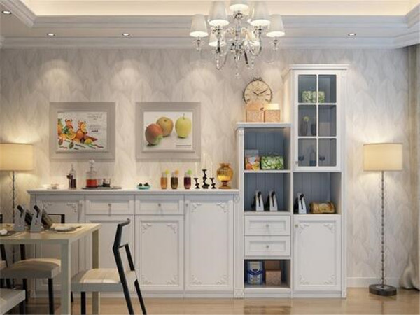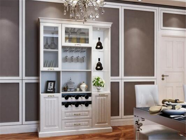 整體采用簡潔的白色用流暢的線條勾勒出簡約法式風味,除了收納酒杯紅酒碗碟,還可添入鮮花等裝飾,富有家居溫馨氣息。