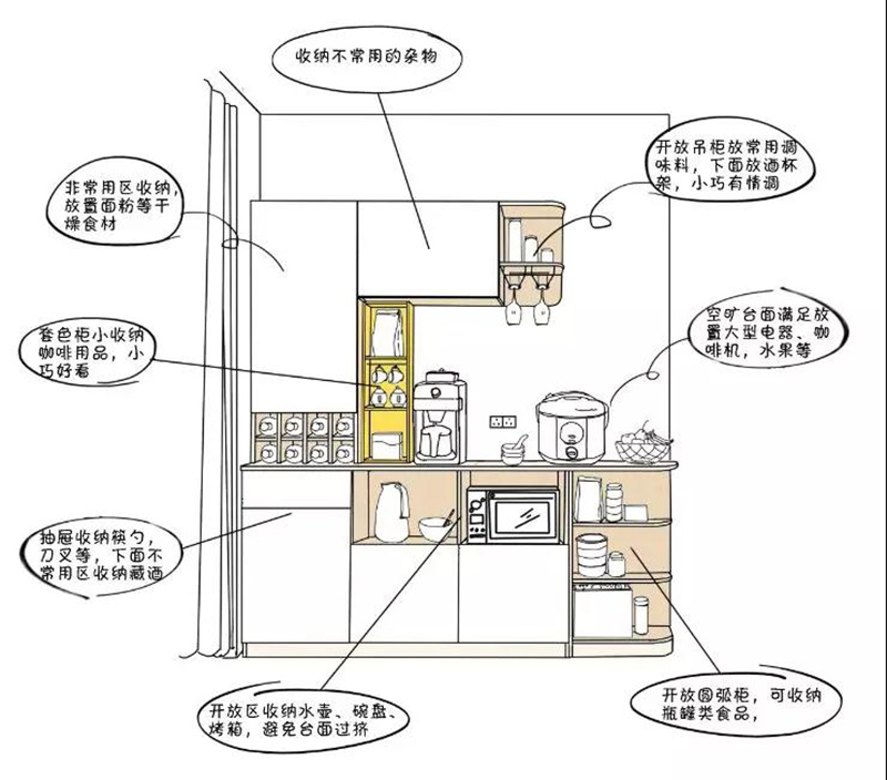 你家的冰箱,電飯煲、烤箱、豆漿機,不常用的杯盤碗碟,是放在廚房臺面吸油煙呢,還是霸占著極有限的櫥櫃收納空間呢?