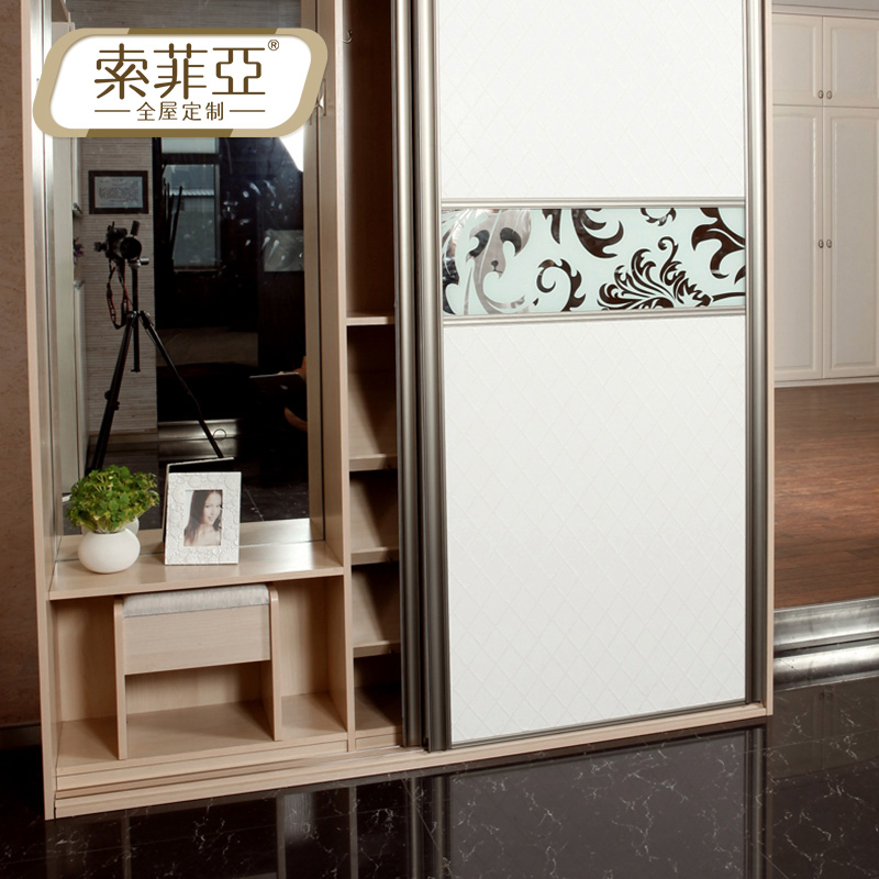 嵌入式鞋櫃完美填補墻面凹位,充分利用了墻面空間。全身鏡、換鞋凳、儲鞋區、儲衣區均有,功能完備,收納空間強大。小空間卻有著大容量,特別適合小戶型家庭。