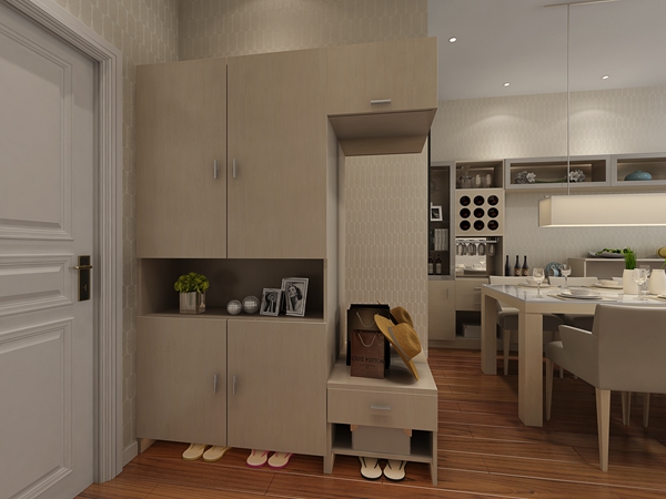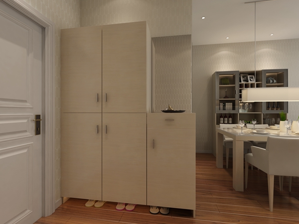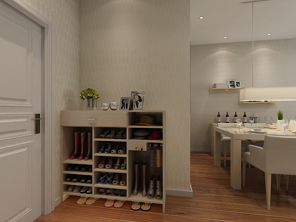 實用款的玄關櫃收納面積相對較大,而且櫃子較多,在擺放完鞋子之后一般還有剩余的空間。因而,上面一層的櫃子可以用來收納一些包包和衣服,為家中的其他地方騰出了空間,出入的時候也更加方便。