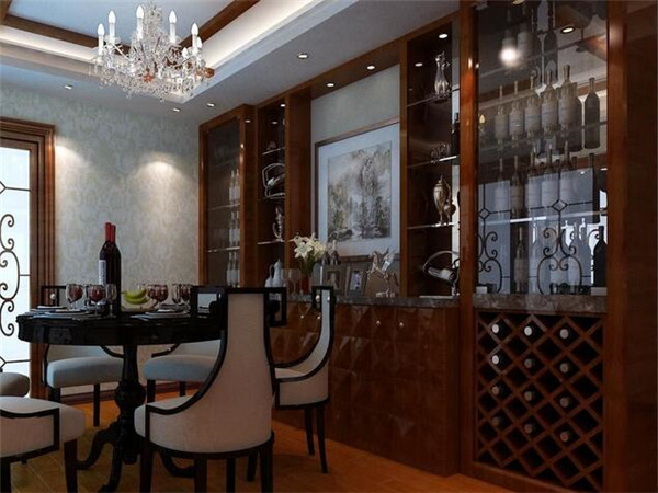 4、在現在很多家庭的戶型中,客廳和餐廳是連在一起的,所以為了體現層次感,一般的家庭會設置一個隔斷,而這個隔斷往往又和酒櫃合二為一,既是酒櫃,同時又起到了隔斷的作用,這個在現代的餐廳酒櫃設計知識中,是非常的普遍的。