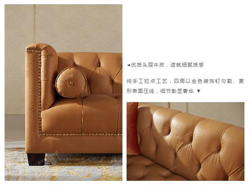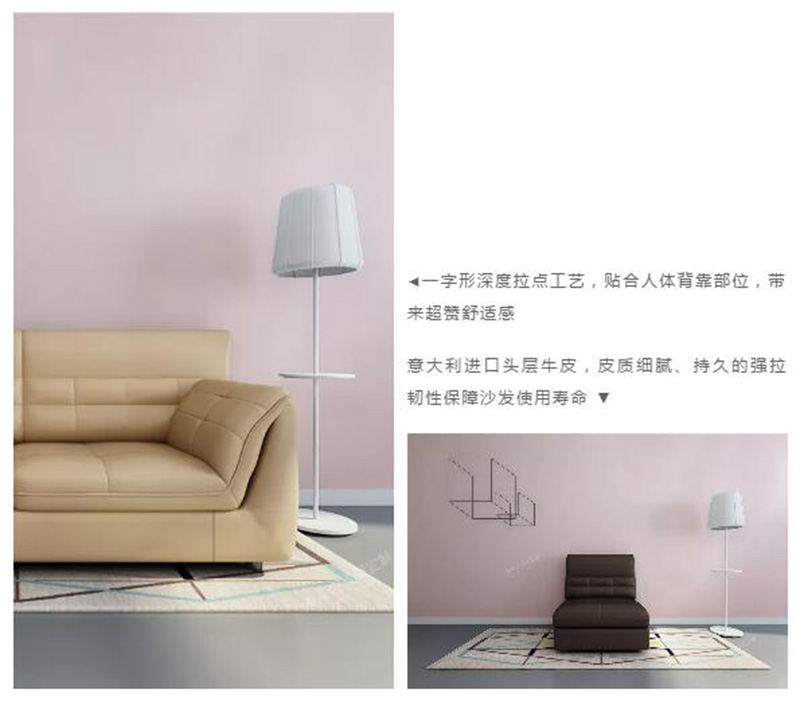 ▼意大利進口頭層牛皮,皮質細膩、持久的強拉韌性保障沙發使用壽命