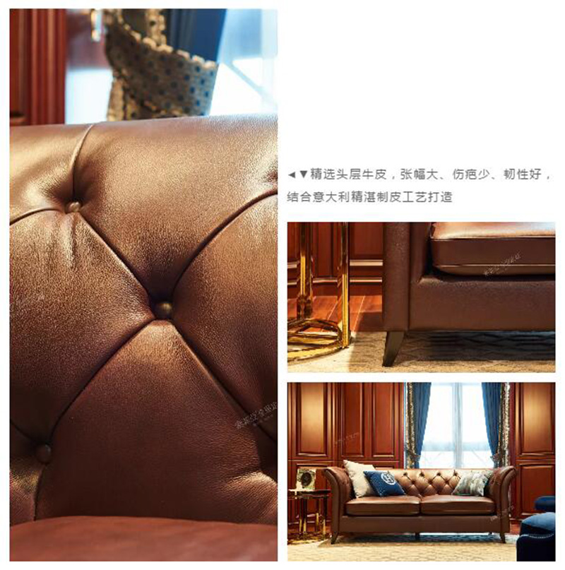 復古造型的真皮沙發,具有上乘質感。用心傳承匠心工藝品質,讓家具如藝術品般地呈現。