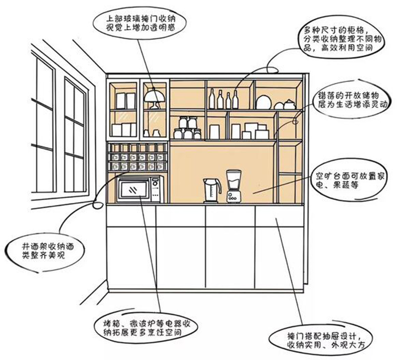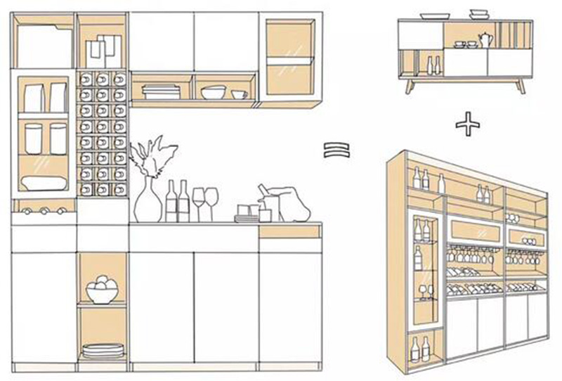 其實,只要餐“邊”櫃做出一點改變,一個簡單的餐“酒”櫃,就能讓這些困擾迎刃而解。