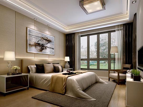 臥室也是注重隱私度和舒適度的,因此我們在臥室的設計與在其他空間上的設計是有所區別的,我們在選擇臥室燈光時要選擇柔和、溫馨的燈光,切勿選擇光線太白或太強烈的燈光,會顯得臥室呆板沒有生氣。
