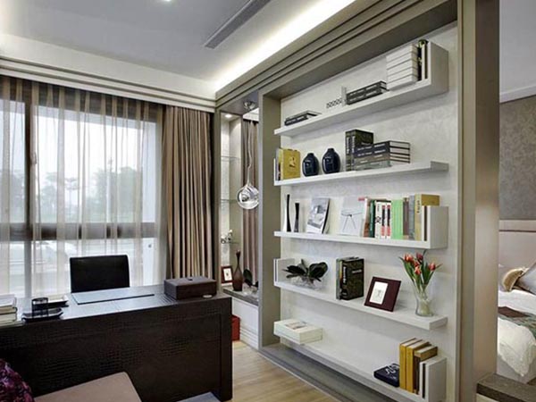 設計就該讓每一寸空間都發揮應有的作用,很多臥室都會有一些空置的角落空間。若真喜歡讀書,不如把這個角落利用起來,一張桌子,幾層隔板就能讓你擁有一個小書房。