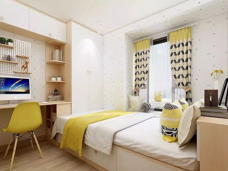 若是臥室整體是清新風裝潢,可以與素色地板搭配,地板上不帶太多的紋理,看起來也很好看。