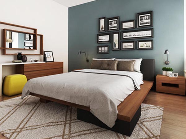 因為臥室是家人休息的地方,所以臥室的環境應該是安靜祥和且舒適的。那么在家庭裝潢時對臥室氛圍的營造就顯得非常重要,一般通過墻面或家具等軟裝顏色搭配來營造。通常我是的顏色以暖色調為主,當然也有以暗色調為主的。不管是以什麼色調裝潢臥室,在家具顏色的選擇上就需要與臥室的整體色調相協調,這樣才能更好地營造氛圍。