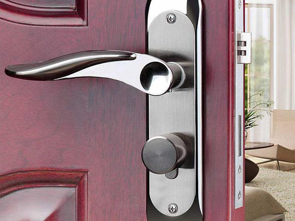 量好門框的尺寸,寬度與門框相同,長度超過門鎖孔的長度。找一個做不銹鋼的地方,用玫瑰金不銹鋼做一塊裝飾板,並留好鎖孔。拿回家后,用萬能膠粘貼在破損位置,就可以起到不錯的裝飾效果了。