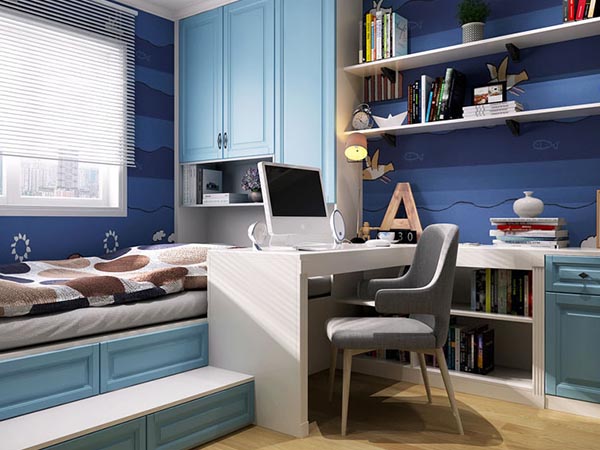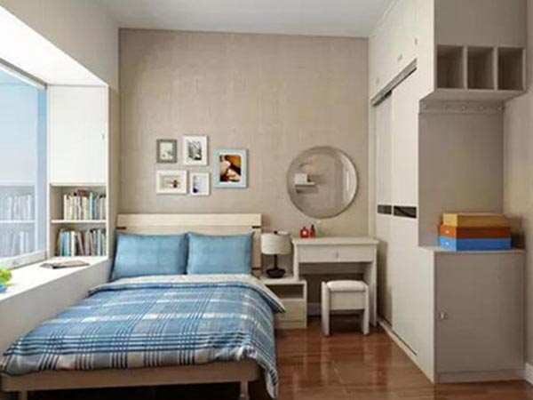 1、收納櫃設計,小臥室設計一些收納櫃是很有必要的,但是傳統的收納櫃設計都比較占據空間,讓臥室看起來也不夠整潔,適當的設計收納櫃內置是小臥室裝潢的不二法寶。