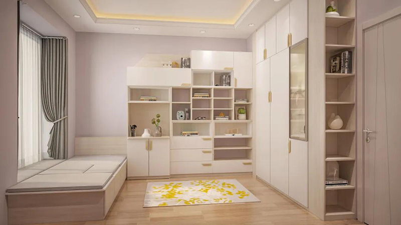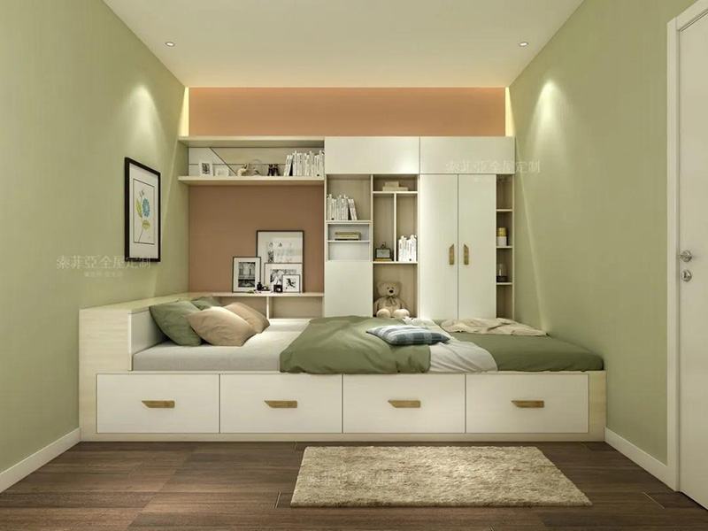 這樣做相當于把衣櫃藏到了床底,無形之中,減少了家具對動線的占據,讓小房間有了更多的可能。