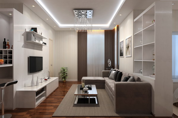 倘若在小廳中必須采用到頂的高身櫃,靈活變通的方法是可以改用中空的高身櫃。這種櫃的特點是下重上輕而中空。下重是指組合櫃的下半部較大,而上輕是指櫃的上半部較小,中空則是指櫃的中部留空。換句話說,這是把“露白”從櫃頂向下移,移至中間部分而已。中空的高身組合櫃,雖然高及屋頂,但因中間有相當大的一片空白,故此不覺擠塞,亦減少了壓迫感。櫃的下半部可儲放書籍雜物,宜有木門遮掩;上半部的空格則可擺放古玩及各式各類的收藏品。至于中空部分,則可擺放電視機以及音響器材。