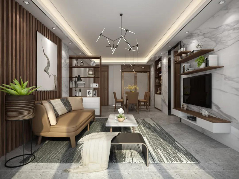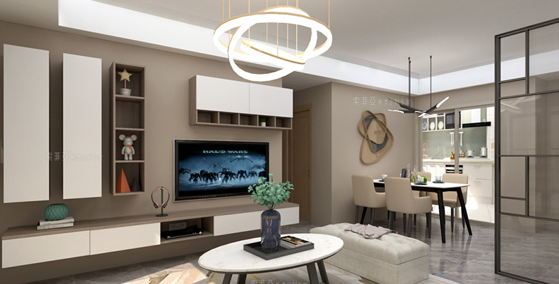 客餐廳相連,電視櫃餐邊櫃一體設計,兩大功能區連接緊密又相互獨立。