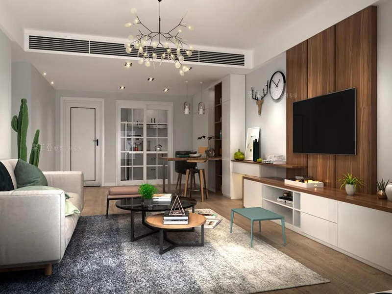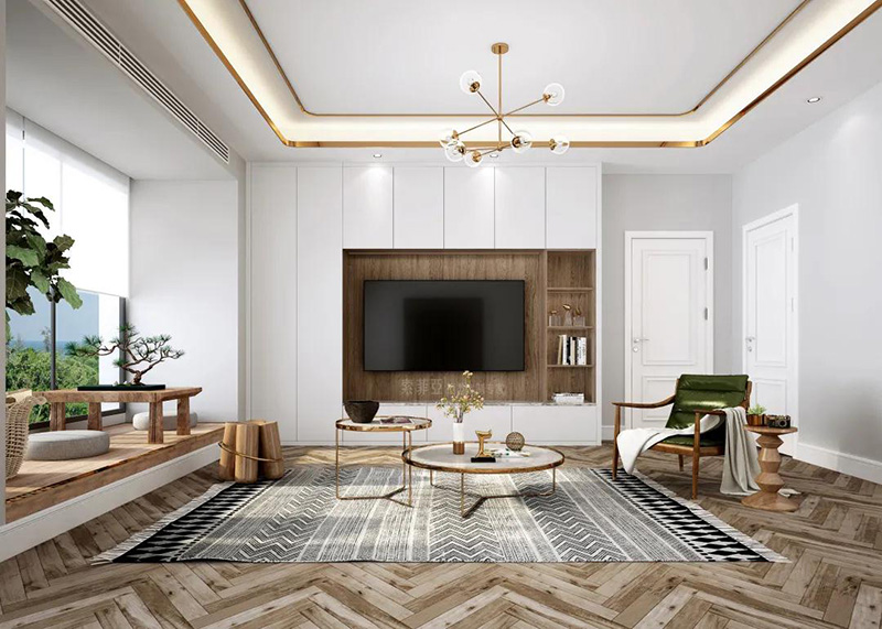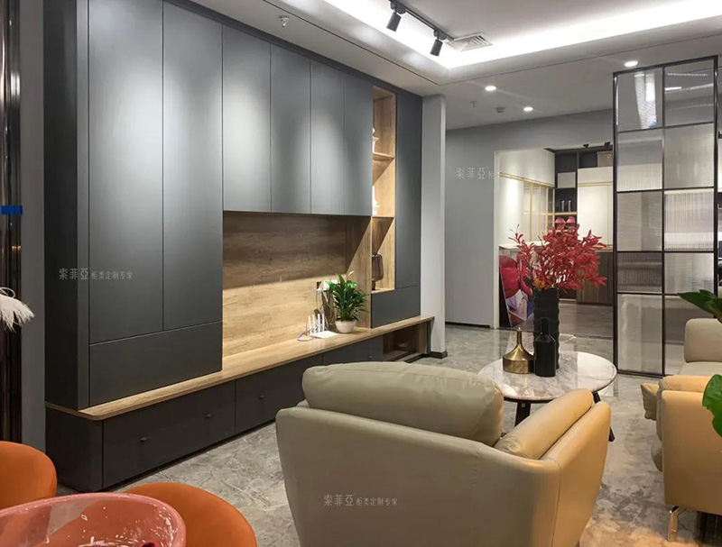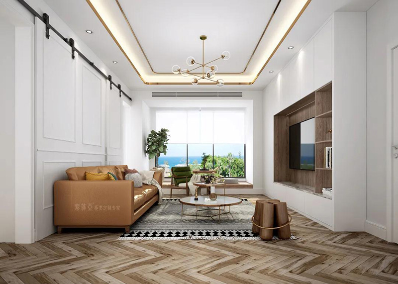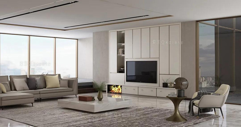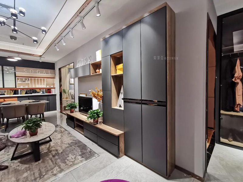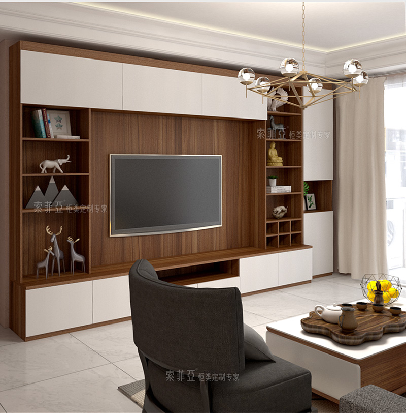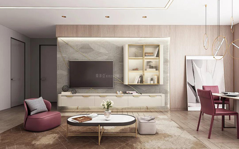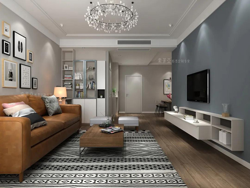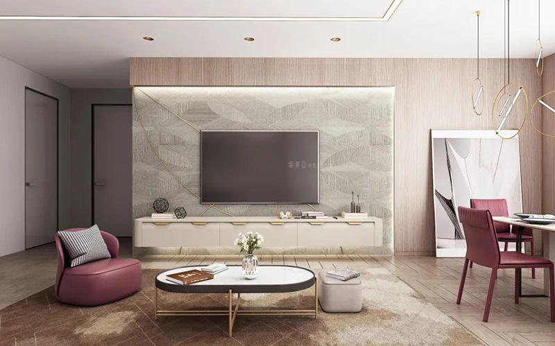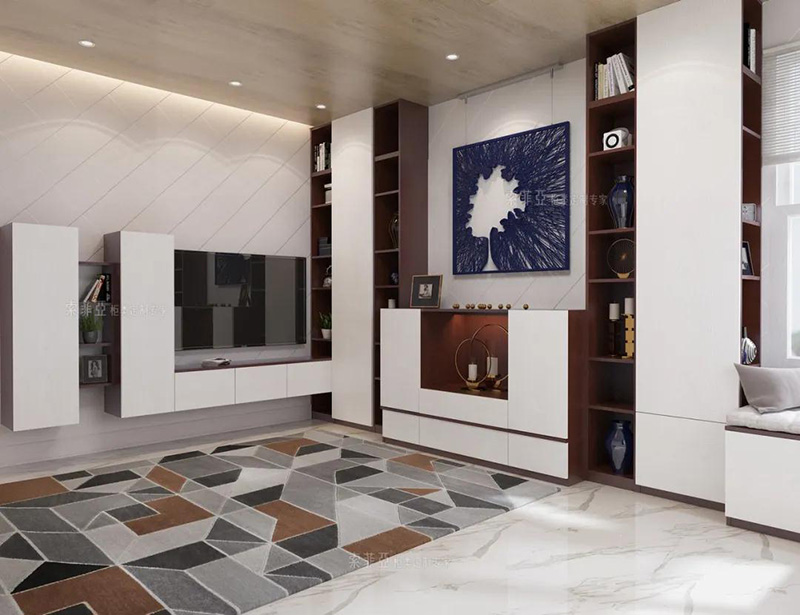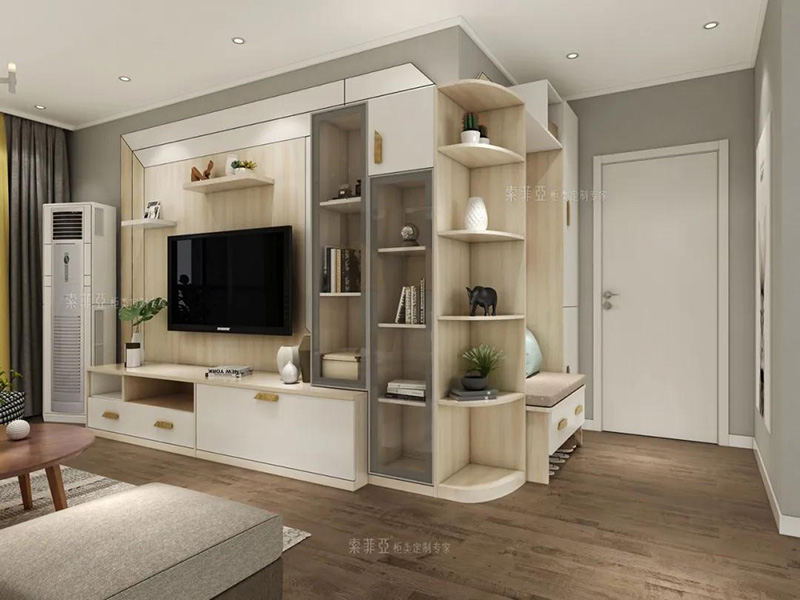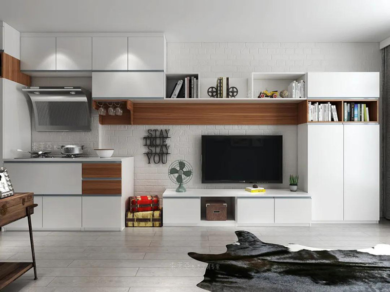 在現在的商品房及公寓戶型當中,客廳和其他功能區之間的界限越來越模糊,電視櫃完全可以實現一體式設計跨區布局。
