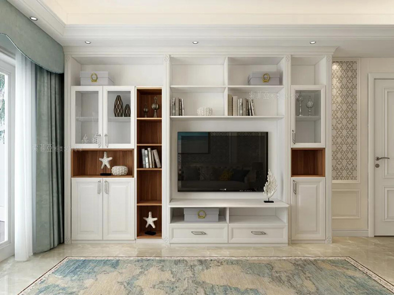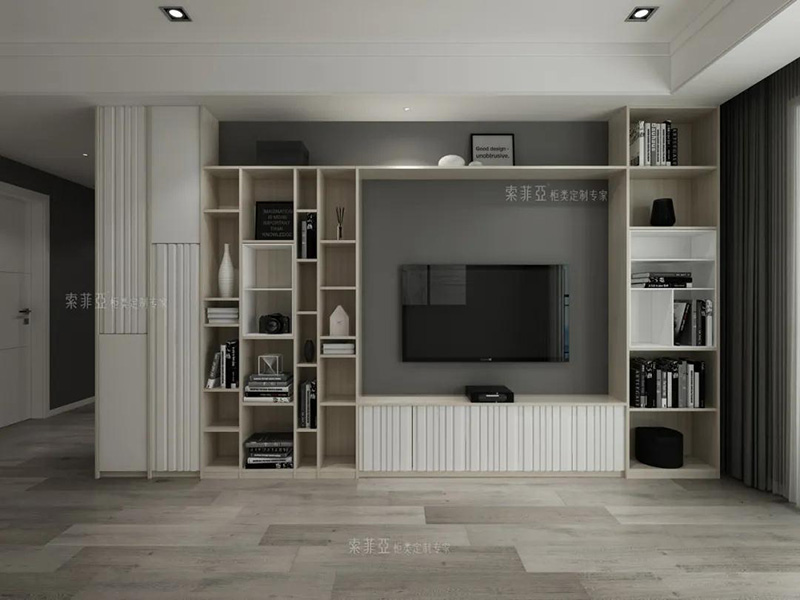 喜歡在家里看書或是收藏的家庭,還可以使用開放式儲物格更多的整墻電視櫃組合。