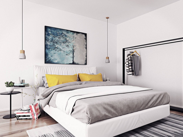 1.床要靠在墻角,這樣一來就可以最大限度的增加一側的空間——床放在房屋中央時,床兩側的通過距離都太小了。不足60cm時,無論在視覺上,還是實際使用時,都會感到擁擠。