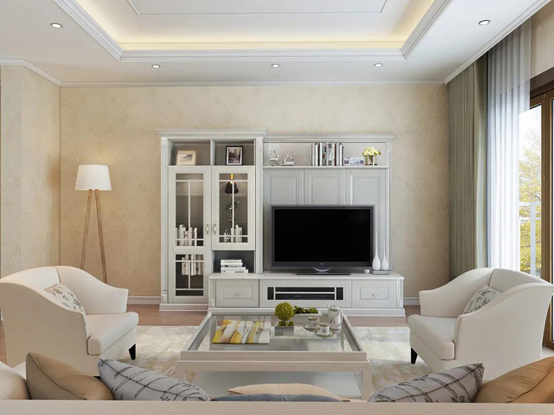 純白色電視櫃,有提亮空間的作用,即使是用在大面積的半墻電視櫃,也不顯得壓抑。