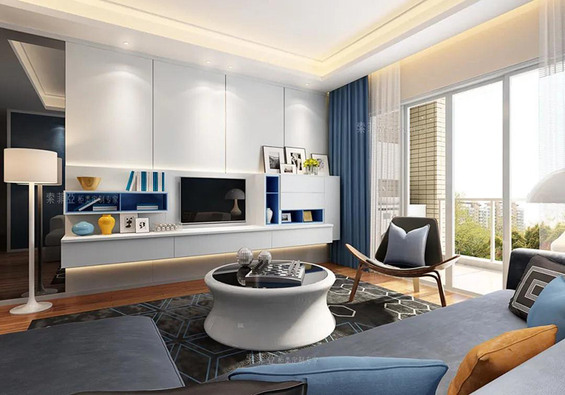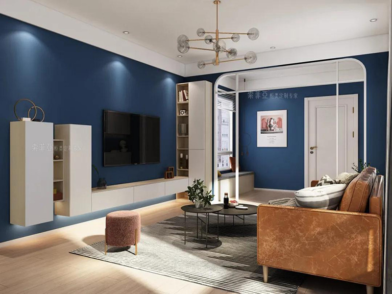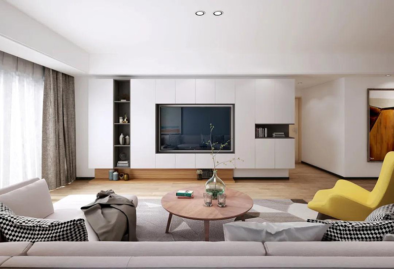 滿墻櫃可以大大減輕客廳的收納壓力,轉角最好做圓弧或斜面處理,避免磕碰。