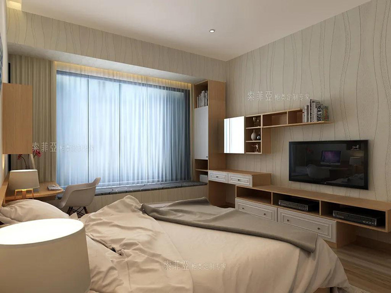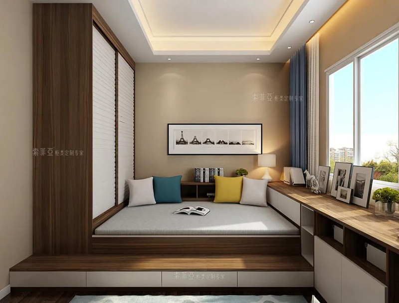 想裝書櫃,臥室不夠地放?客製化一個與飄窗同寬的豎排邊櫃,放上你愛看的書,飄窗就是你的讀書角。