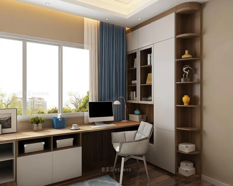 一個地櫃空間利用不夠全面,加上書桌書櫃,打造獨立工作學習區,墻面空間也要好好利用起來。