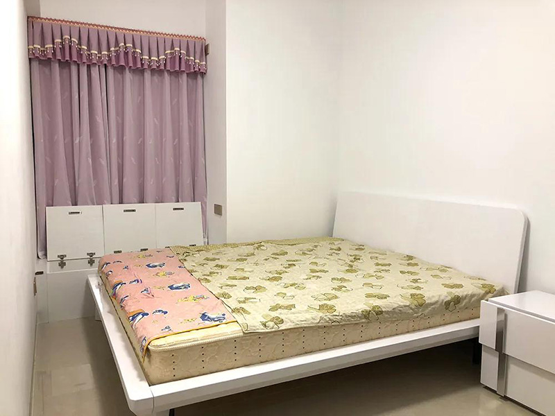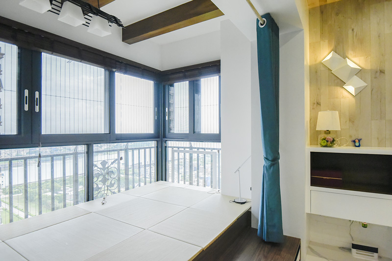 臥室的陽臺下方做成榻榻米茶室,還可以收藏起不少東西呢。