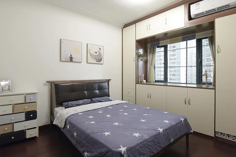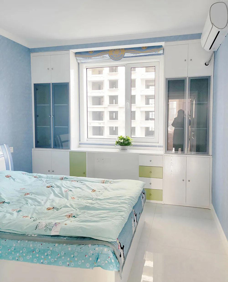 圍繞窗戶四周做一個整體儲物櫃,再多的東西也能好好地收納,不會造成臥室凌亂。