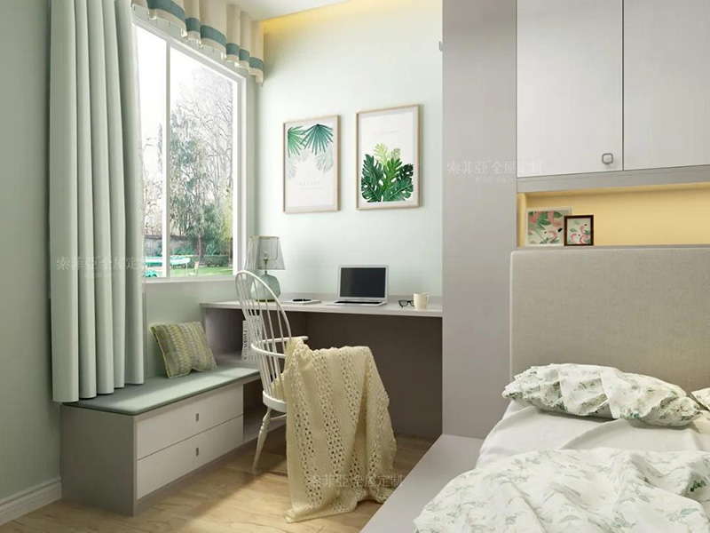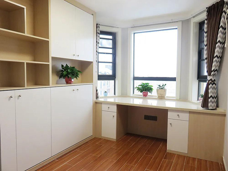 如果你家的飄窗是可以砸掉的,就可以收獲幾平方米的收納和功能空間了。可以在飄窗邊上打造收納櫃、書桌櫃,甚至是打造榻榻米床,多出一個休閑區。