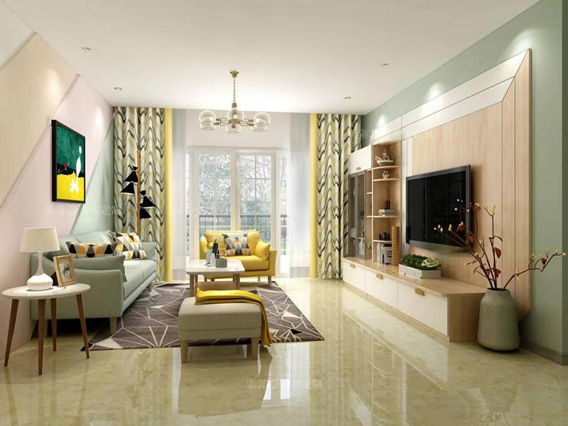 北歐風色系的電視櫃裝飾客廳,讓家飄著一股清新自然之風。