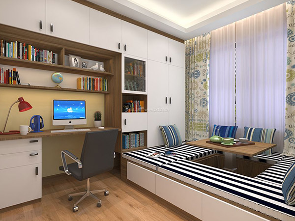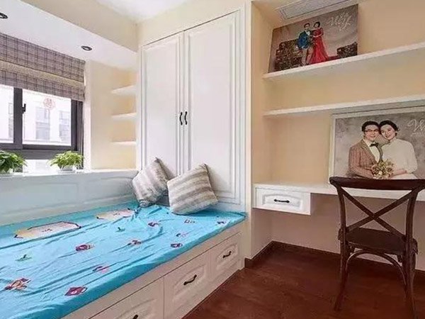 小臥室裝潢榻榻米時,對于墻面可以選擇明亮的顏色,這樣可以在視覺上給人一種寬敞明亮的感覺,另外小臥室面積有局限性,榻榻米裝潢選擇明度和純度較低的灰色調為佳。